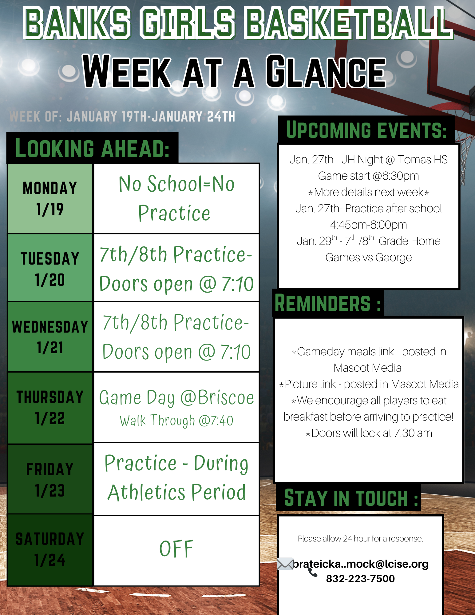 WRIGHT JUNIOR HIGH WJH 8TH GRADE B GIRLS BASKETBALL | 5:30 PM | - - | |