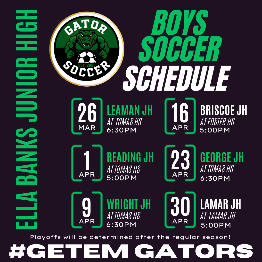 LAMAR JUNIOR HIGH LJH 8TH BOYS SOCCER | LAMAR JUNIOR HIGH SCHOOL | 05:00 PM | |
