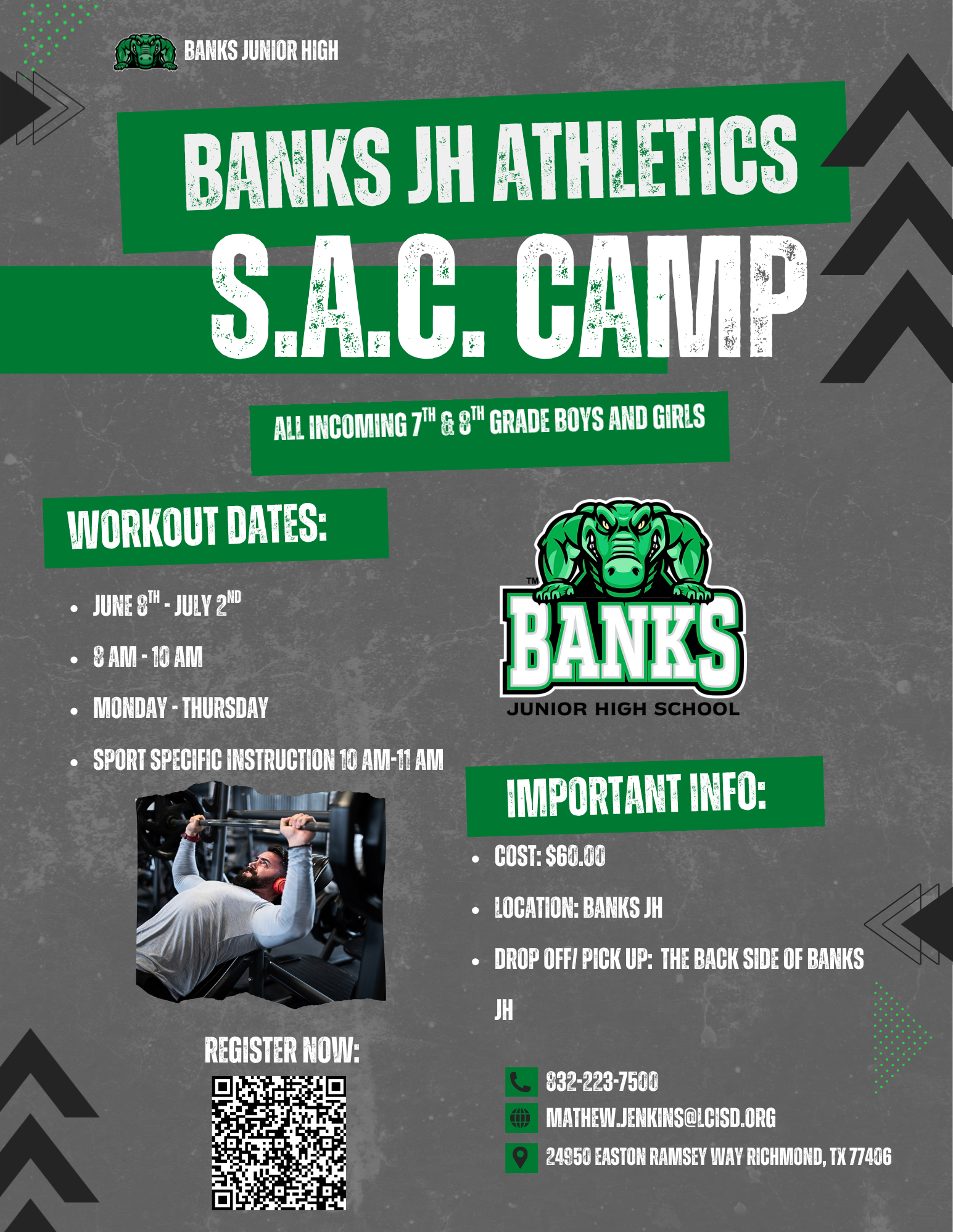 Join us for our Future Gator Athlete Parent Meeting on April 29 from 5:30–7:00 PM. This informational meeting is for all incoming 7th and 8th-grade athletes and their families.
