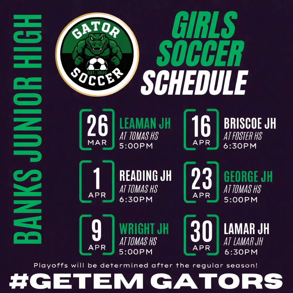 LAMAR JUNIOR HIGH LJH 8TH GIRLS SOCCER | LAMAR JUNIOR HIGH SCHOOL | 06:30 PM | |